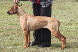 Bling is from Enya's final litter to frozen semen from the lovely Barron (American Champion Images In The Woods of Reddawg).  Bling is typical of what Enya produces with a lovely gentle nature, easy efficient gait, excellent ridge and pretty head.