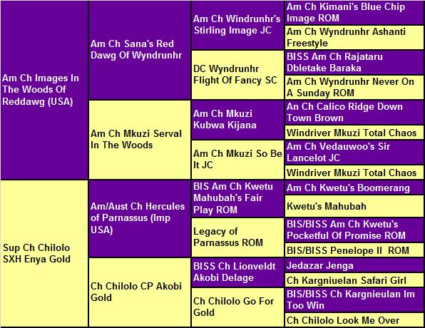 Her mother is Supreme Ch Chilolo SXH Enya Gold, grandmother is Ch Chilolo CP Akobi Gold and great grandmother is Ch Chilolo Go For Gold.  We look forward to seeing the next generation of  'golden girls'!