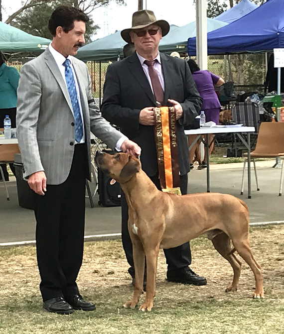 Andrew, however, learned to handle and has done amazingly well with Cooper by winning multiple Best In Show at RR Specialty shows as well as Best Ridge and Best Gait. Cooper is a moderate dog who appeals to local and international judges alike and he is now an Australian Grand Champion