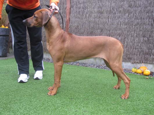 She is developing very nicely and has a laid back temperament very similar to her mother. She has beautiful dark, round eyes and an excellent long ridge.
